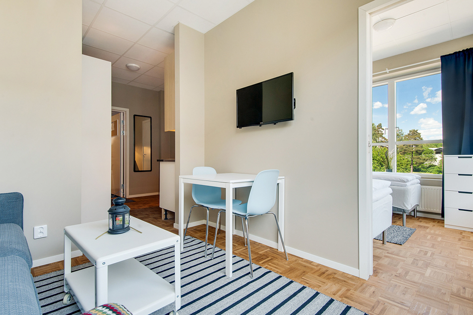 Våra rum är utrustade med moderna pentryn och fiberanslutna bredband/wifi.