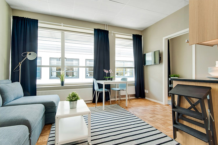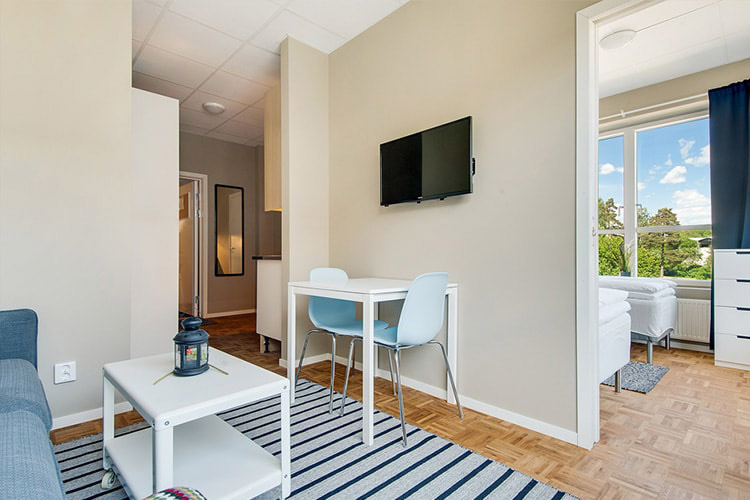 De tre lägenheterna har antingen en enkelsäng, två stycken sängar eller två sovrum. Alla lägenheter har likadana former av kök, dusch/wc, wifi, TV. Veckostädning, byte av lakan och handdukar ingår även i alla lägenheter.